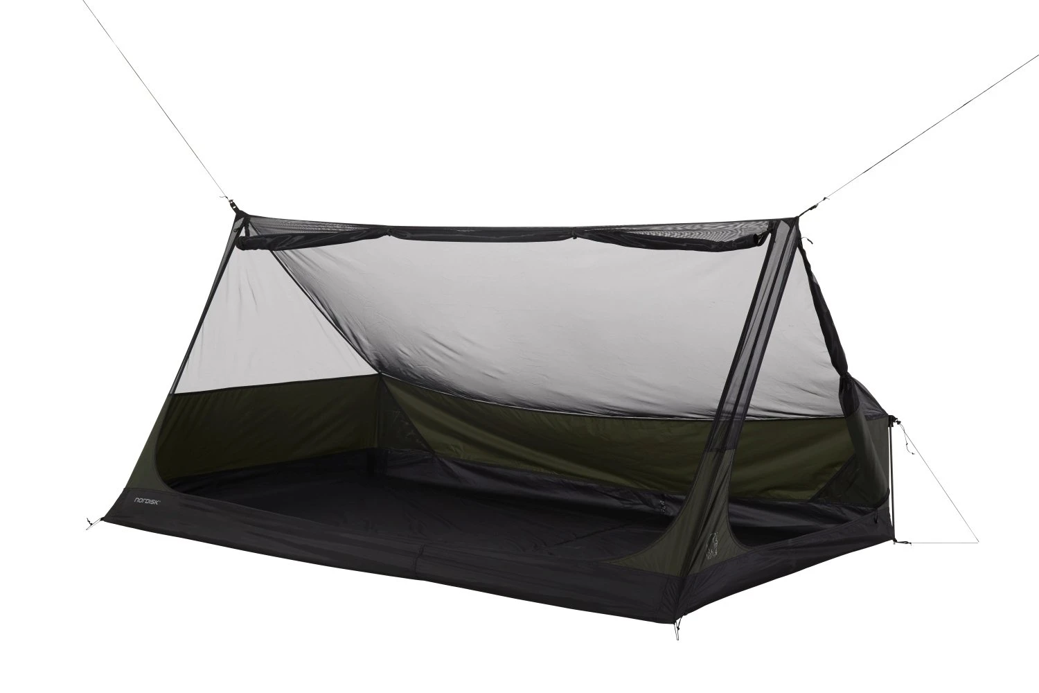 Troms Mesh Cabin ist ein fast unerlässlicher Ausrüstungsgegenstand, wenn man unter freiem Himmel oder – vor Insekten geschützt – unter einem Tarp übernachten möchte. Zum Schutz vor Witterungseinflüssen hat das Zelt auf allen Seiten eine 40 cm hohe, aus 15D- Ripstop-Nylon gefertigte Wand. Das Tarp bietet ausreichend Platz für zwei Personen mit Ausrüstung. Es kann mit zwei Wanderstöcken, Ästen oder zwischen zwei Bäumen errichtet werden. Für den Aufbau werden nur 6 Heringe benötigt und es ist mit allen Nordisk Voss Tarp-Varianten kompatibel. Das Zelt hat zwei Eingänge, am hinteren Ende und an der Seite, und passt so zu den beliebtesten Tarp-Aufbauarten.
