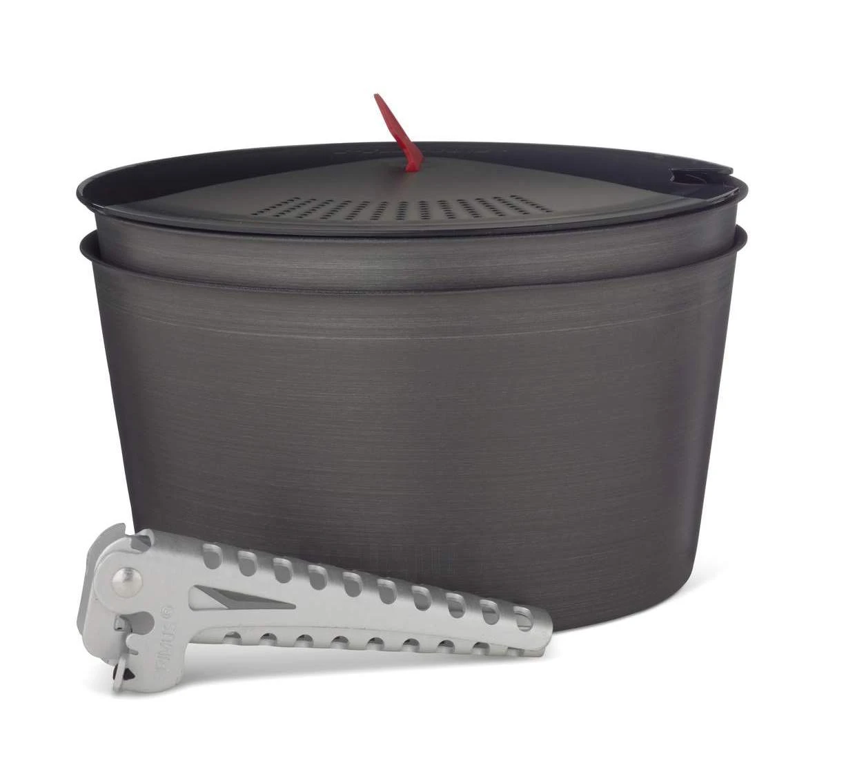 Die Töpfe sind aus hart-eloxiertem und hochgradigem Aluminium hergestellt, was ein strapazierfähiges aber leichtes Set ergibt. Beide Töpfe haben eine Antihaft-Beschichtung in mehreren Schichten, damit sie so leicht wie möglich anzuwenden und zu reinigen sind. Achte darauf, dass Du keine Metallgeräte in den Töpfen benutzt, da dies die Antihaft-Beschichtung zerstören kann. Die Töpfe kann man ineinander packen und sie sind so eine klapperfreie Einheit. Das Set beinhaltet einen Deckel mit integriertem Sieb – perfekt, wenn man Nudelwasser abschüttet, außerdem eine Griffzange und einen Transportbeutel.