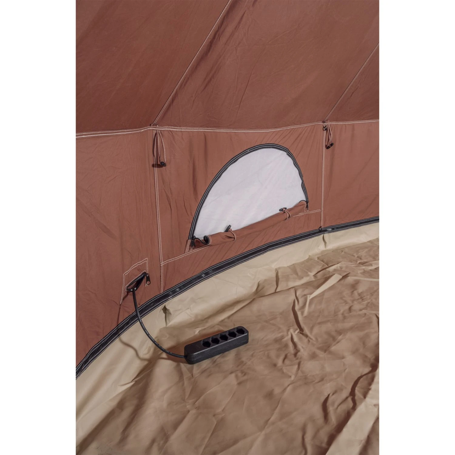 Das Spatz Cotton Exchange bietet ungemein viel Platz und Komfort. Durch die einzelne Stange in der Mitte des Zeltes ist es sehr einfach aufzubauen und bietet einen großen Eingang. Perfekt sowohl für den Familienurlaub, als auch für das Pfadfinderlager oder die Tour mit dem Land Rover.